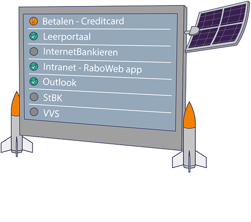De bekende SOS-monitor wordt geïntegreerd in de pagina Toepassingen van het ICT Portaal. SOS staat voor Status Overzicht Systemen. Zo wordt zowel de algemene informatie als de actuele status van een toepassing in één oogopslag weergegeven. Medewerkers kiezen zelf voor welke toepassing zij over de status op de hoogte worden gebracht. Dankzij de knop ‘Ik heb deze storing ook’ melden medewerkers een storing, zonder de Servicedesk Groep ICT te bellen.